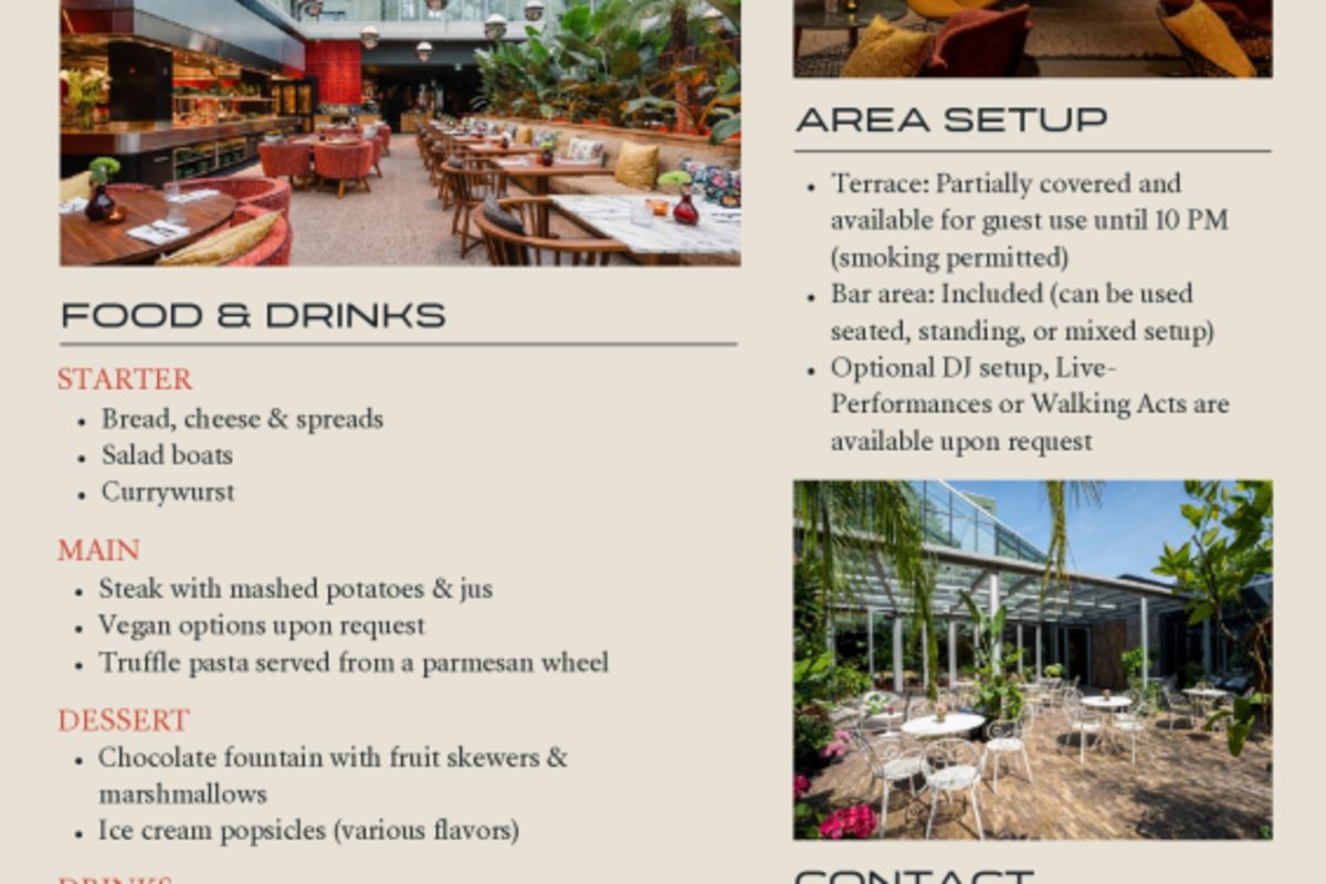 Eine lebendige Mischung aus Sitz- und Stehplätzen, mit Live-Küche und sorgfältig zusammengestellten Speisen- und Getränkestationen im ganzen Restaurant. Ideal für ein interaktives Abendessen, bei dem es eine Vielzahl von Geschmacksrichtungen zu entdecken gibt.