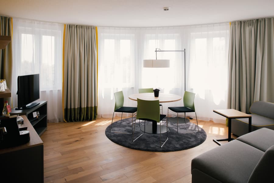 Die wohnliche Atmosphäre unterstützt die Kommunikation und eine positive Arbeitsatmosphäre. Wir haben uns sehr wohlgefühlt. Die Grünfläche vor dem Hotel war ideal für unsere Teambuilding Maßnahme.