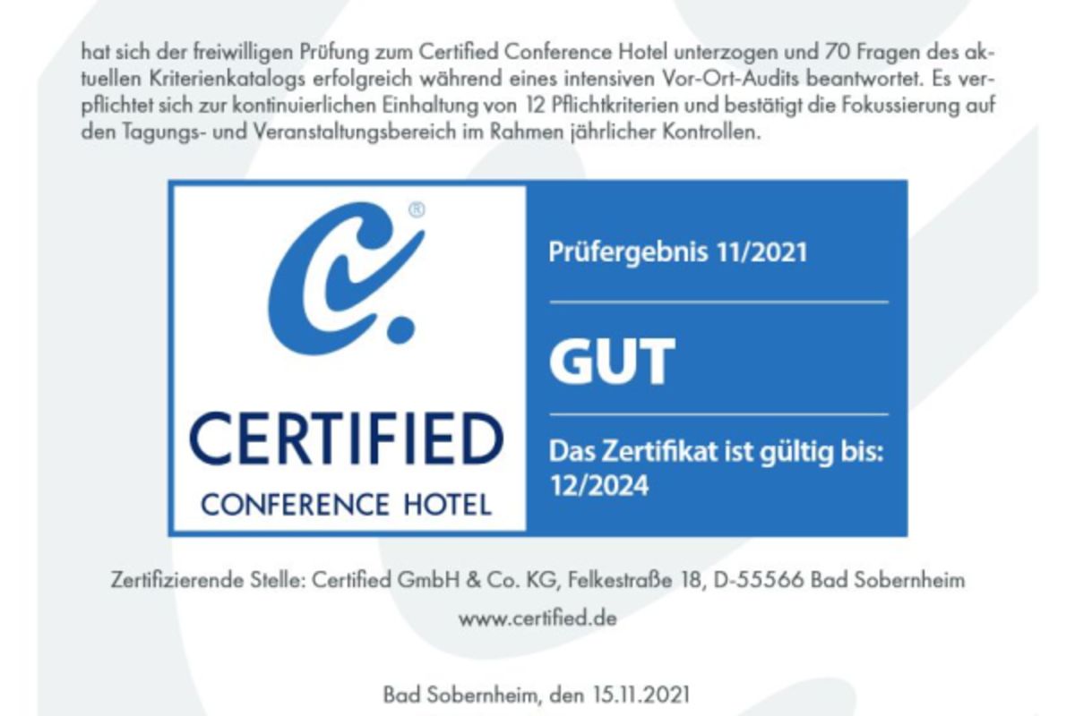 Gute Nachrichten aus dem Mercure Hotel Potsdam City: Unser Certified Conference Zertifikat wurde erfolgreich verlängert! ✅ Damit garantieren